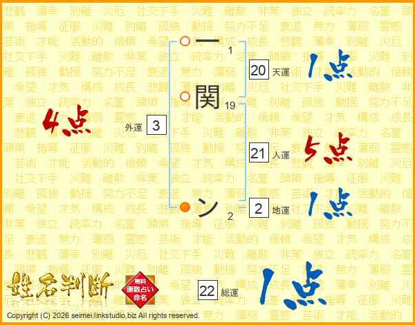 一関ンさんの総運は22画の1点!