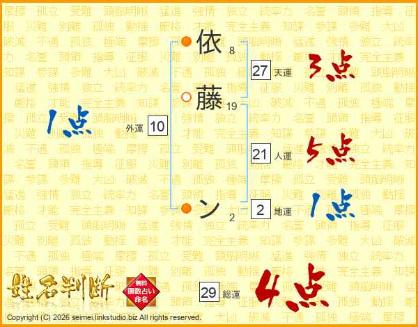 依藤ンさんの総運は29画の4点!