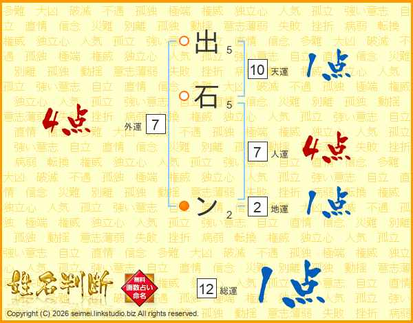 出石ンさんの総運は12画の1点!