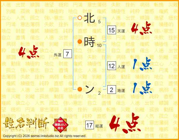 北時ンさんの天運は15画の4点!