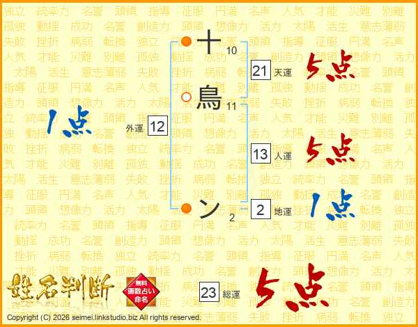 十鳥ンさんの天運は21画の5点!
