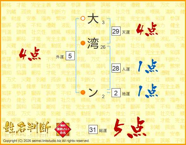 大湾ンさんの総運は31画の5点!