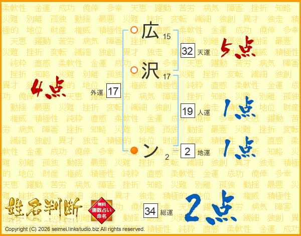 広沢ンさんの総運は34画の2点!