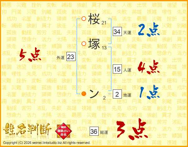 桜塚ンさんの天運は34画の2点!