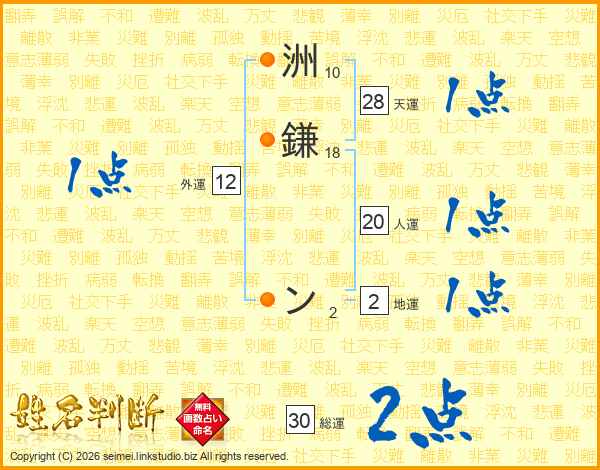 洲鎌ンさんの総運は30画の2点!