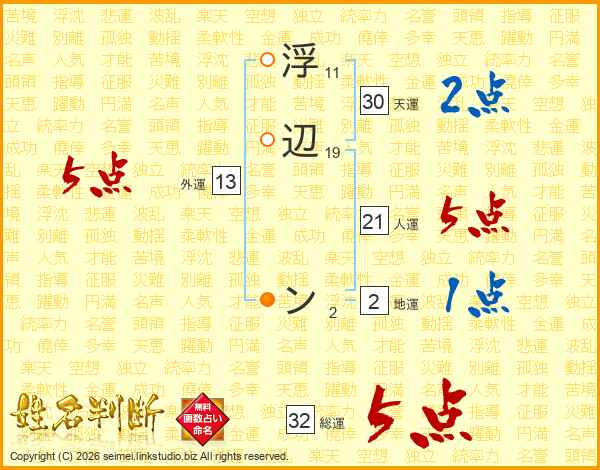 浮辺ンさんの総運は32画の5点!