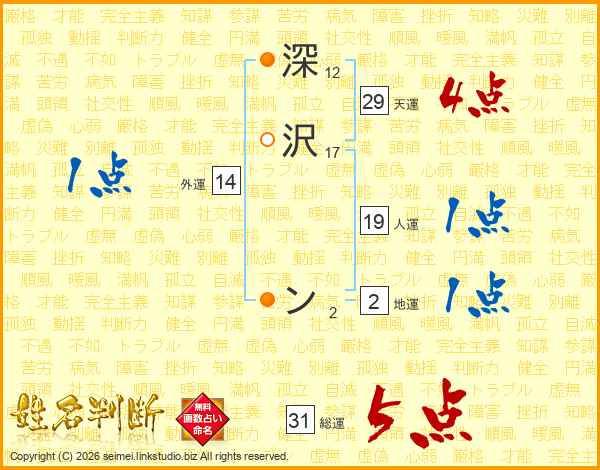 深沢ンさんの総運は31画の5点!