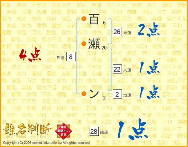 百瀬ンさんの天運は26画の2点!