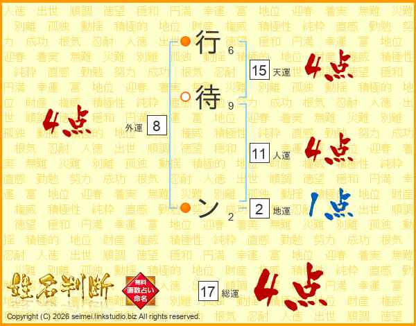 行待ンさんの総運は17画の4点!