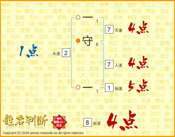 一守ーさんの総運は8画の4点!