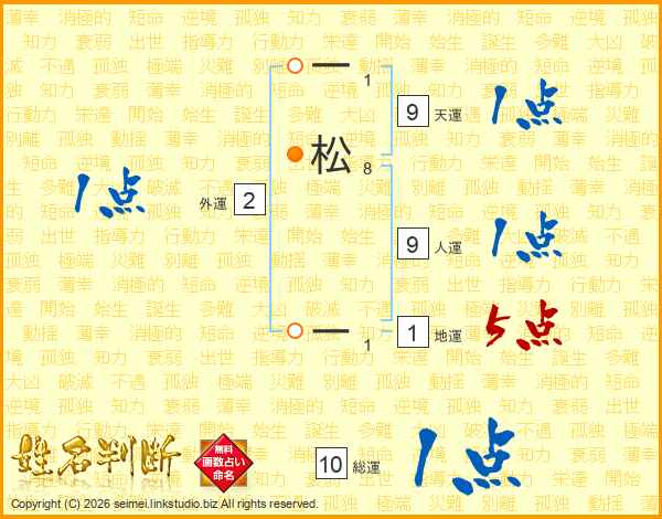 一松ーさんの総運は10画の1点!