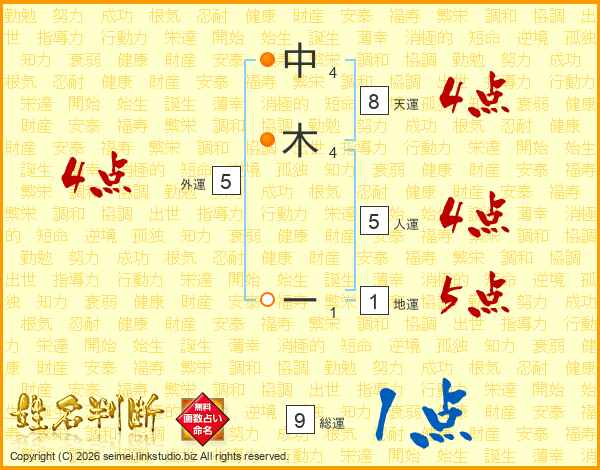 中木ーさんの総運は9画の1点!