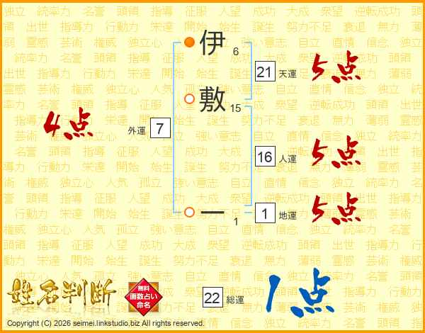 伊敷ーさんの総運は22画の1点!