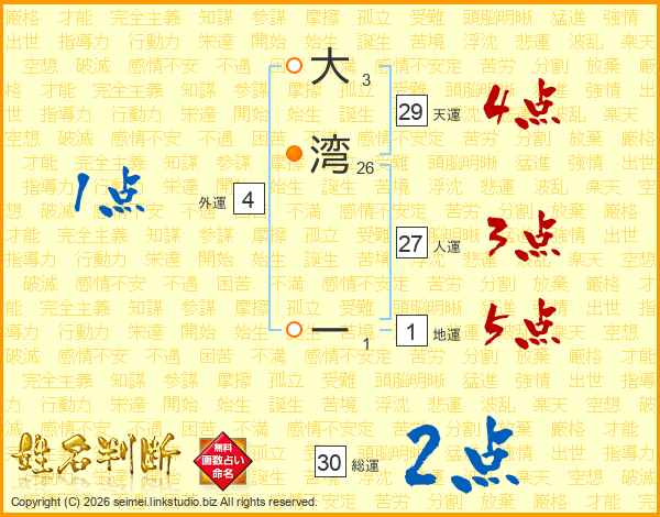 大湾ーさんの天運は29画の4点!