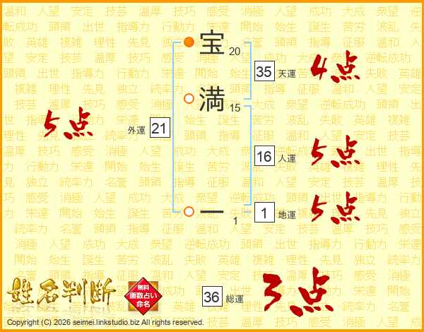 宝(20画)満(15画) ー(1画)
