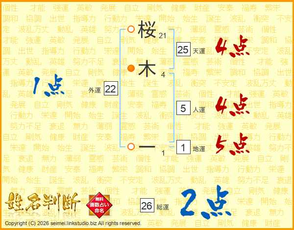 桜木ーさんの総運は26画の2点!
