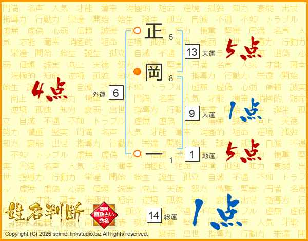 正岡ーさんの天運は13画の5点!