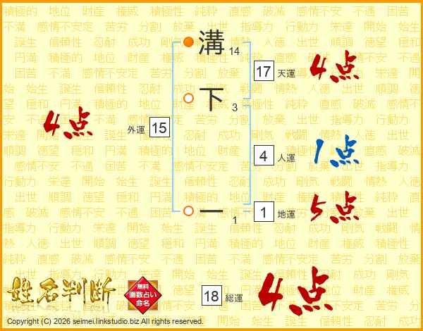 溝下ーさんの総運は18画の4点!