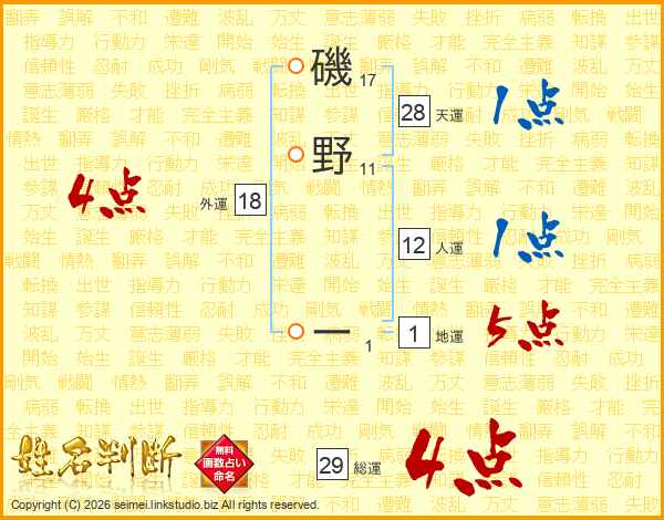 磯野ーさんの総運は29画の4点!