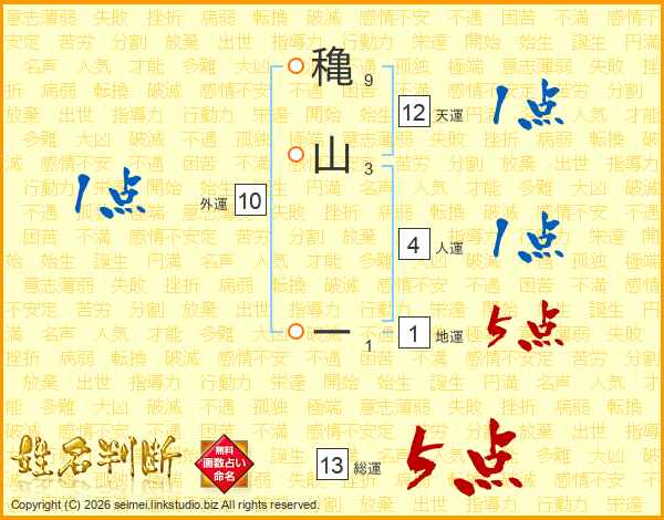 穐山ーさんの総運は13画の5点!