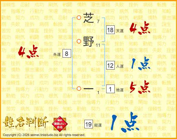 芝野ーさんの天運は18画の4点!