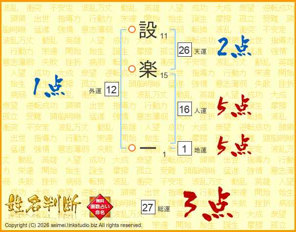 設楽ーさんの天運は26画の2点!