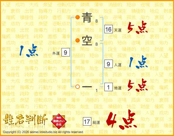 青空ーさんの総運は17画の4点!