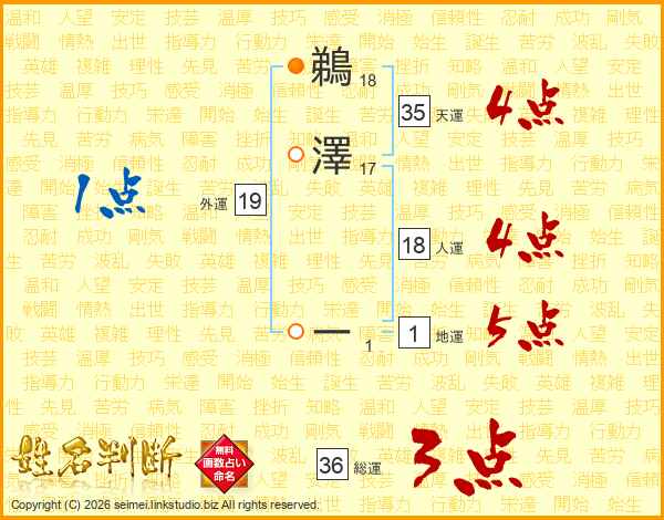 鵜澤ーさんの天運は35画の4点!