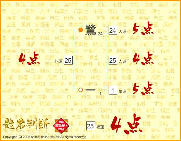 鷺ーさんの天運は24画の5点!