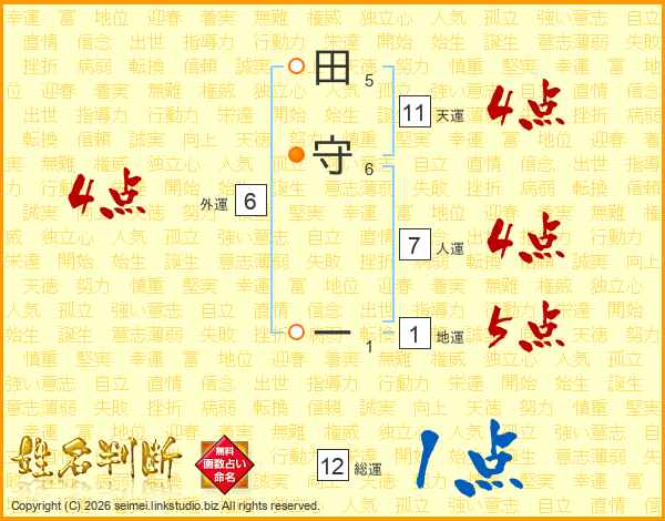 田守ーさんの天運は11画の4点!