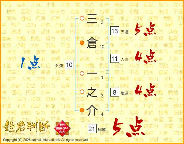 三(3画)倉(10画) 一(1画)之(3画)介(4画)