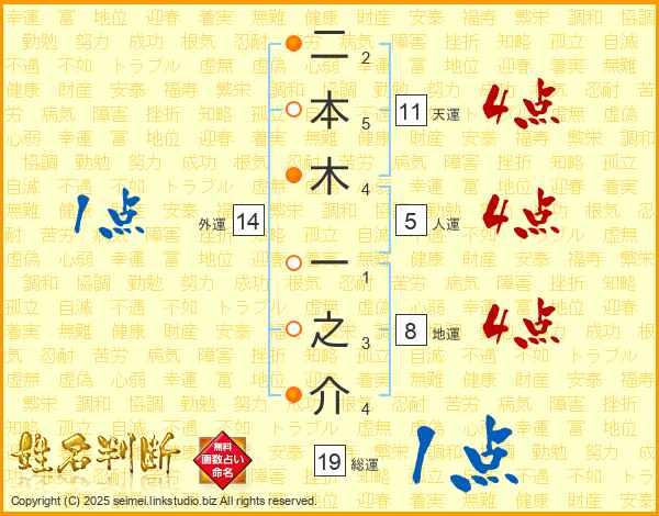 二本木一之介さんの天運は11画の4点!