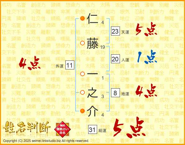 仁藤一之介さんの総運は31画の5点!