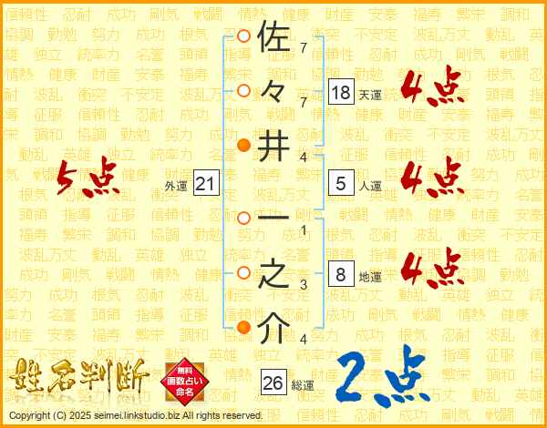佐々井一之介さんの総運は26画の2点!