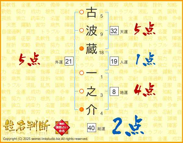 古波蔵一之介さんの外運は21画の5点!