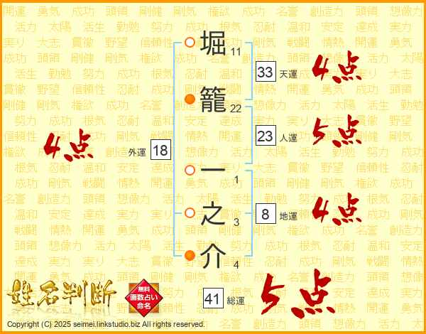 堀(11画)籠(22画) 一(1画)之(3画)介(4画)