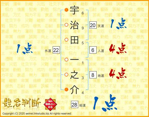 宇治田一之介さんの総運は28画の1点!