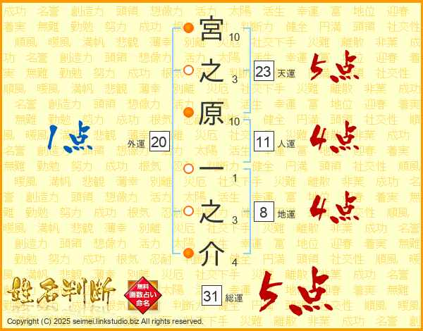 宮之原一之介さんの総運は31画の5点!