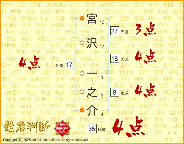 宮沢一之介さんの総運は35画の4点!