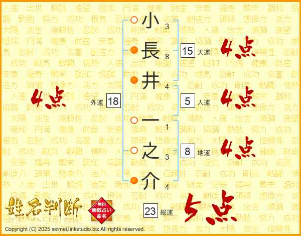 小(3画)長(8画)井(4画) 一(1画)之(3画)介(4画)