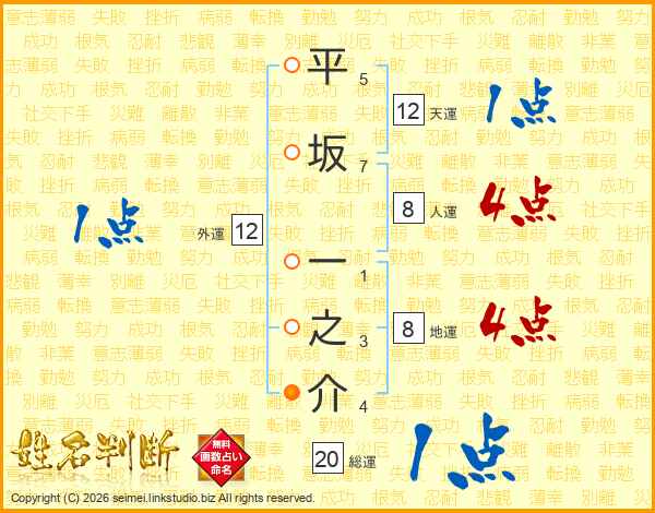 平(5画)坂(7画) 一(1画)之(3画)介(4画)