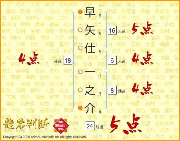早(6画)矢(5画)仕(5画) 一(1画)之(3画)介(4画)