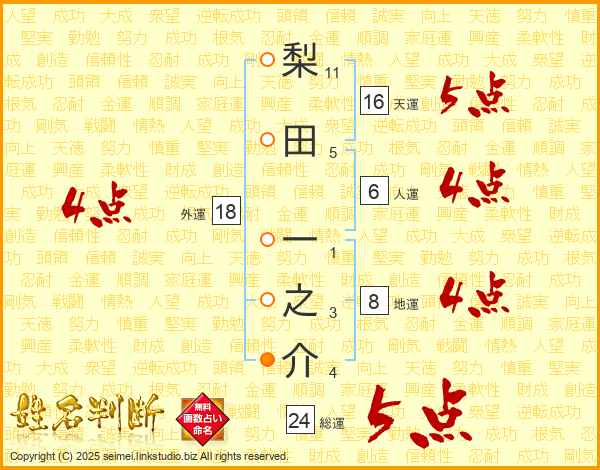 梨田一之介さんの総運は24画の5点!