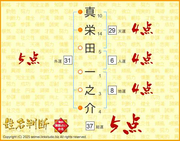 真(10画)栄(14画)田(5画) 一(1画)之(3画)介(4画)