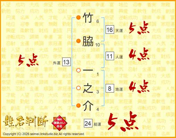 竹脇一之介さんの総運は24画の5点!