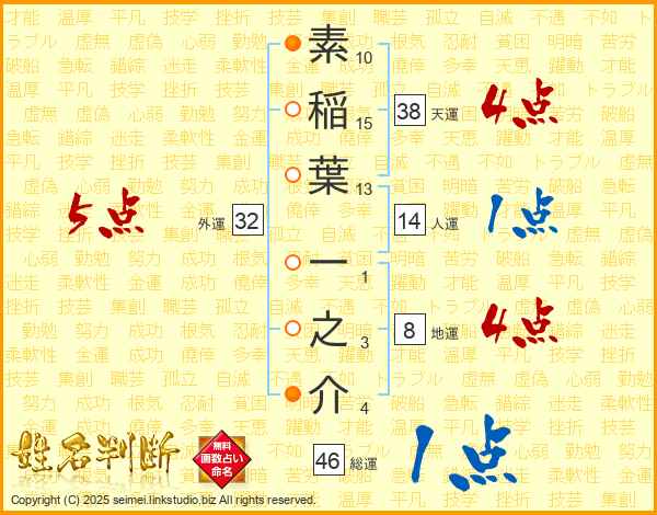 素稲葉一之介さんの総運は46画の1点!