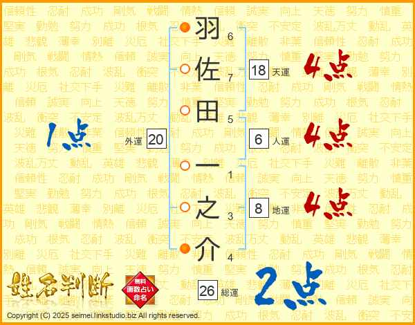 羽佐田一之介さんの総運は26画の2点!