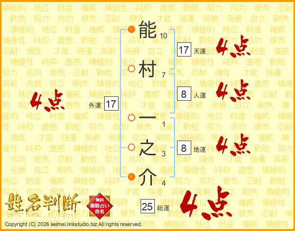能村一之介さんの総運は25画の4点!