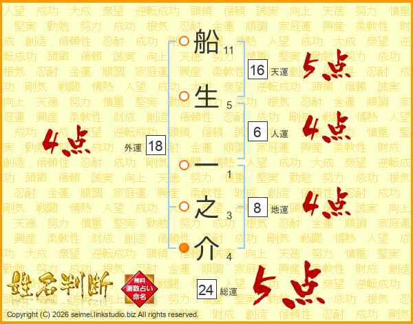 船生一之介さんの総運は24画の5点!
