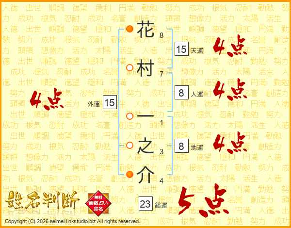 花村一之介さんの総運は23画の5点!